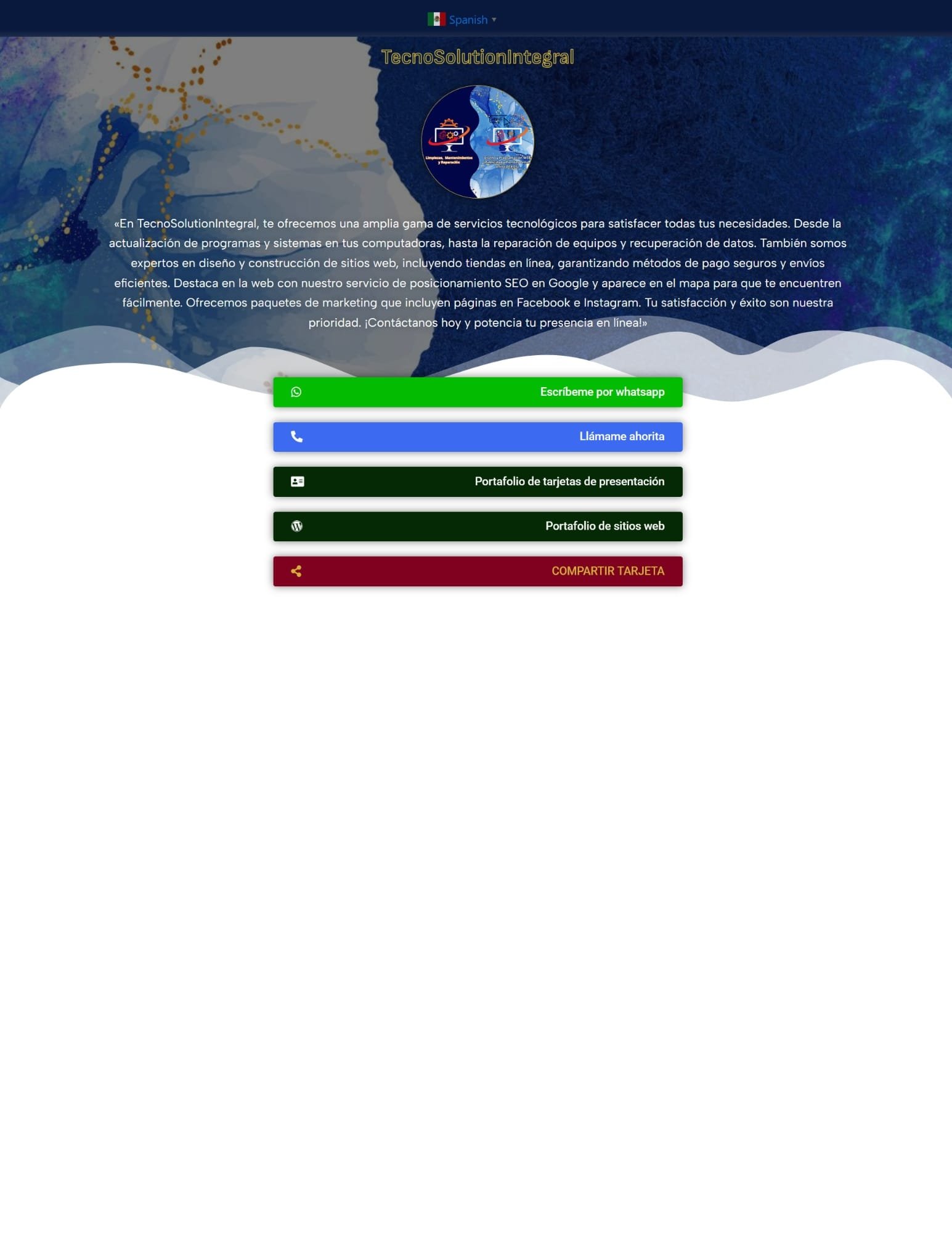 Escaneando el QR de la tarjeta física o accediendo a la URL de la tarjeta física se llega a la tarjeta digital que te muestro al lado. Esta tarjeta digital le da mucho mas información a tu cliente sobre tu negocio de lo que puede darle solo una tarjeta física clásica actual. Entre al ENLACE que te comparto de esta tarjeta digital para que veas todas las ventajas y bondades que tu puedes integrarle también a tu negocio.